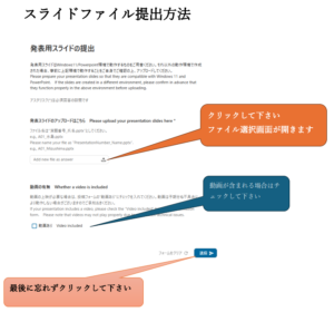 - 講演ファイルは大会前までに、下記からアップロードして下さい。